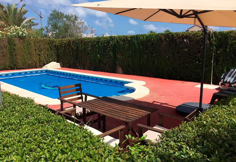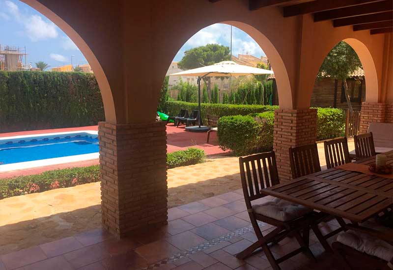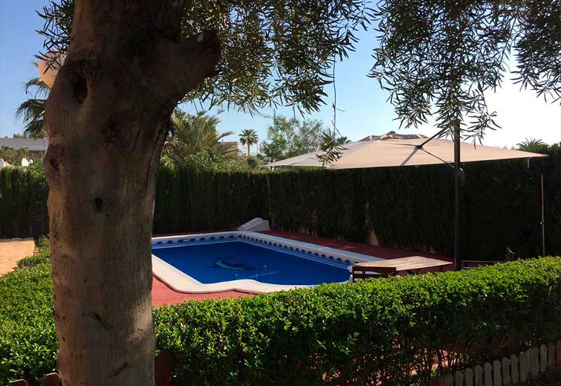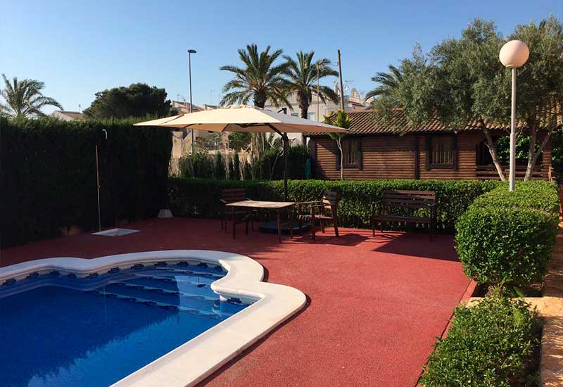 Disfruta de una estancia inolvidable en este encantador chalet con bungalow de madera, ubicado en la tranquila urbanización de Mil Palmeras, Pilar de la Horadada. La propiedad combina confort, estilo y espacios exteriores perfectos para el descanso y la diversión.