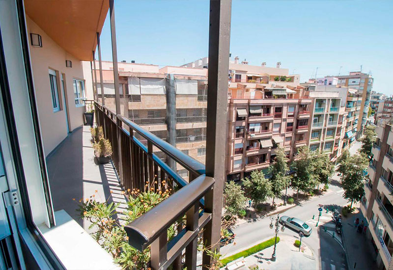 La terraza ofrece inmejorables vistas a tres calles, perfecta para disfrutar del entorno urbano y relajarte al aire libre.